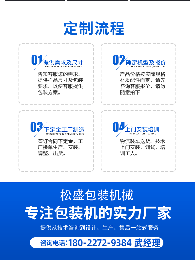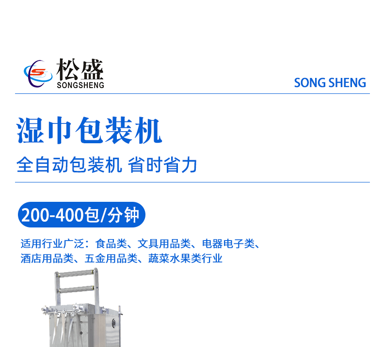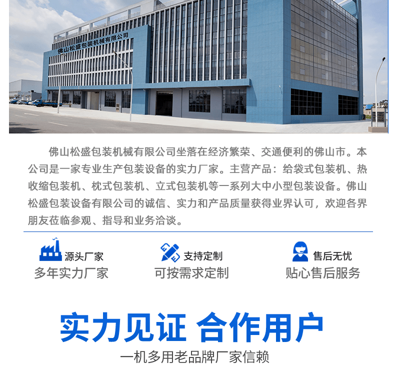 佛山市松盛包裝機(jī)械有限公司專業(yè)生產(chǎn)給袋式包裝機(jī),枕式熱收縮膜包裝機(jī),粉劑包裝機(jī),顆粒包裝機(jī),醬料液體包裝機(jī),高速濕紙巾包裝機(jī),全自動(dòng)計(jì)量稱重填充包裝,廣泛應(yīng)用于食品包裝、日化包裝、醫(yī)藥包裝、工藝品包裝機(jī)、五金包裝、玩具包裝、農(nóng)業(yè)化工等塊狀、條狀、顆粒、液體、粉末產(chǎn)品的全自動(dòng)包裝機(jī)械;集研發(fā)、設(shè)計(jì)、生產(chǎn)、銷售為一體的包裝機(jī)械自動(dòng)化設(shè)備廠家。